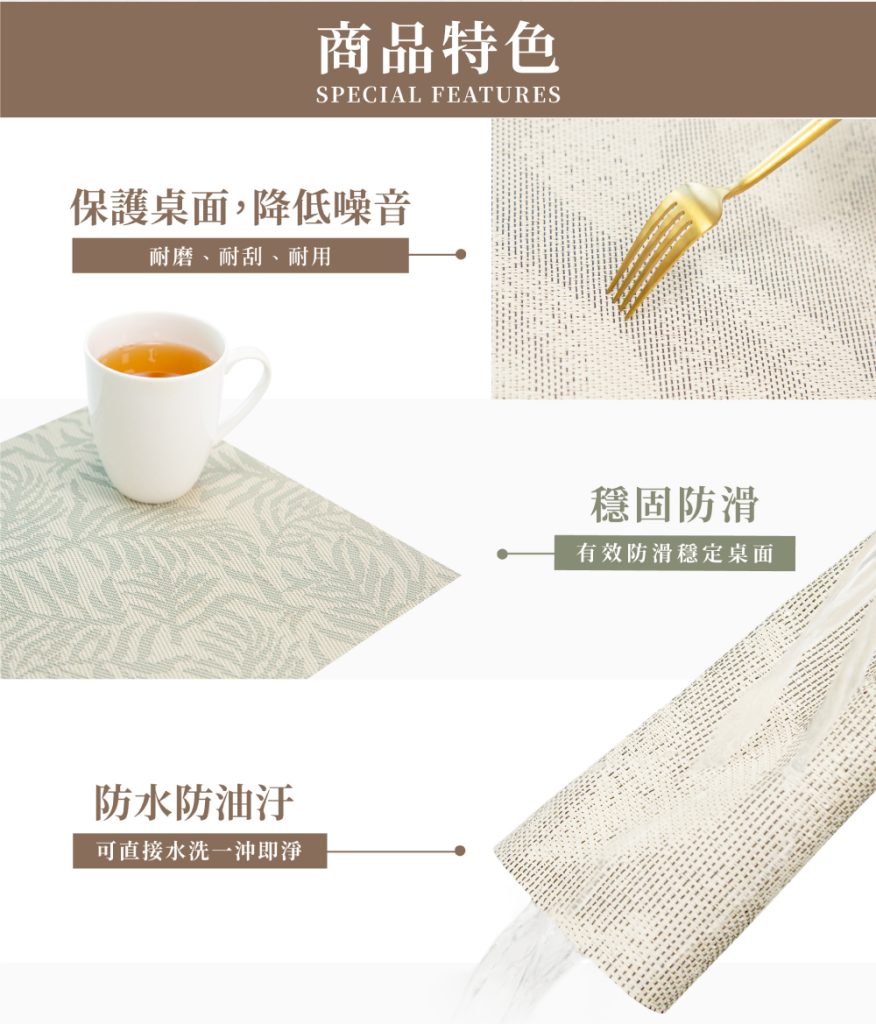 餐桌上必備好物,讓生活更具儀式感與格調,保護桌面,材質耐磨、耐刮、耐用,還可直接水洗,一沖即淨好方便