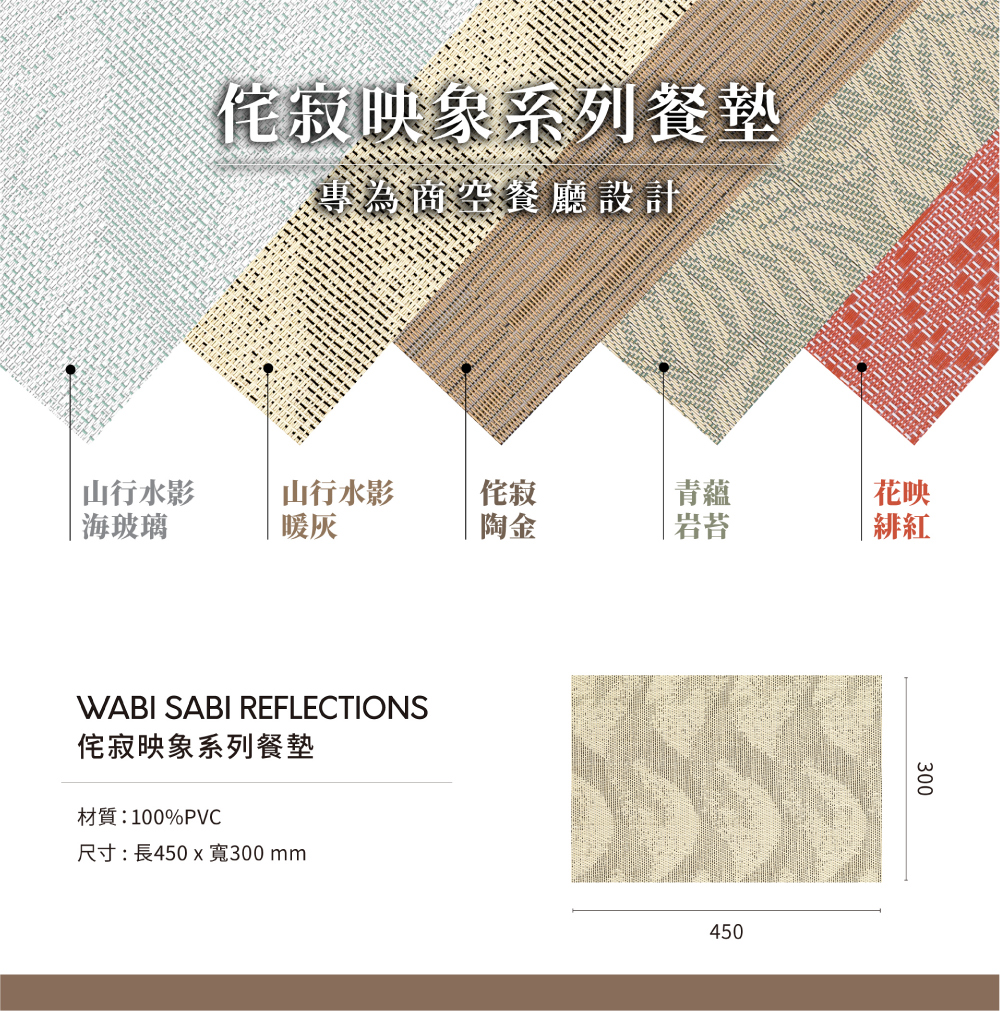 顏色: 山行水影餐墊-海玻璃、山行水影餐墊-暖灰、青蘊餐墊-岩苔、侘寂餐墊-陶金、花映餐墊-緋紅