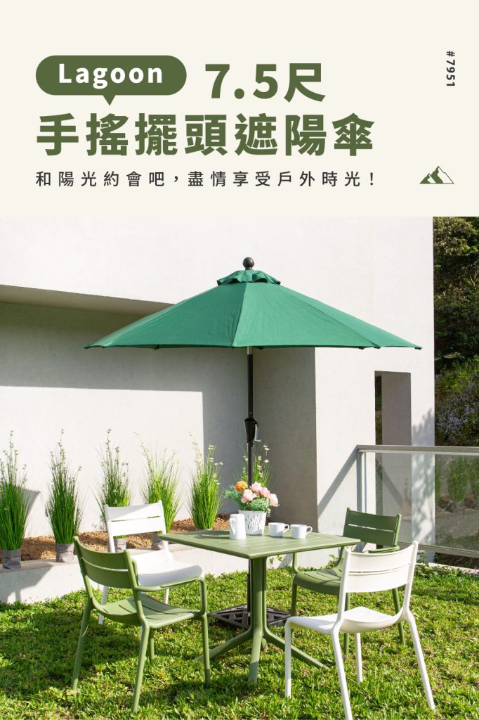 和陽光約會吧,讓您盡情享受戶外時光不怕曬!人性化手搖設計,即使是嬌小的女性也能操作,讓您輕鬆開合傘,調整傘面方向,對抗烈陽輕鬆又省力。