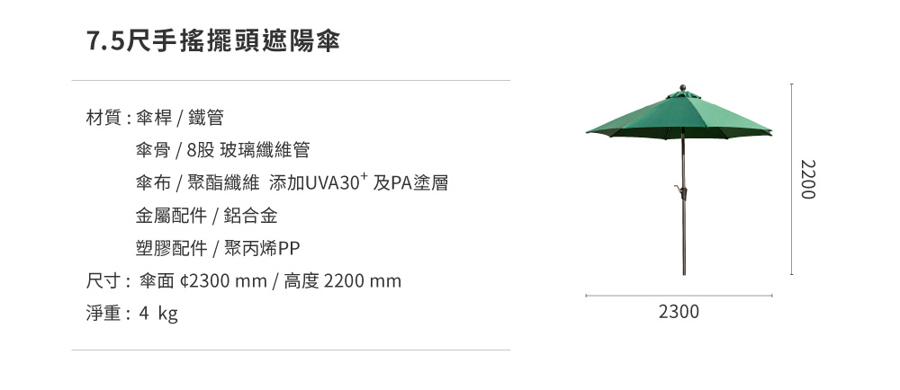 尺寸: 傘面 2300 / 高度 2200mm